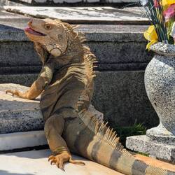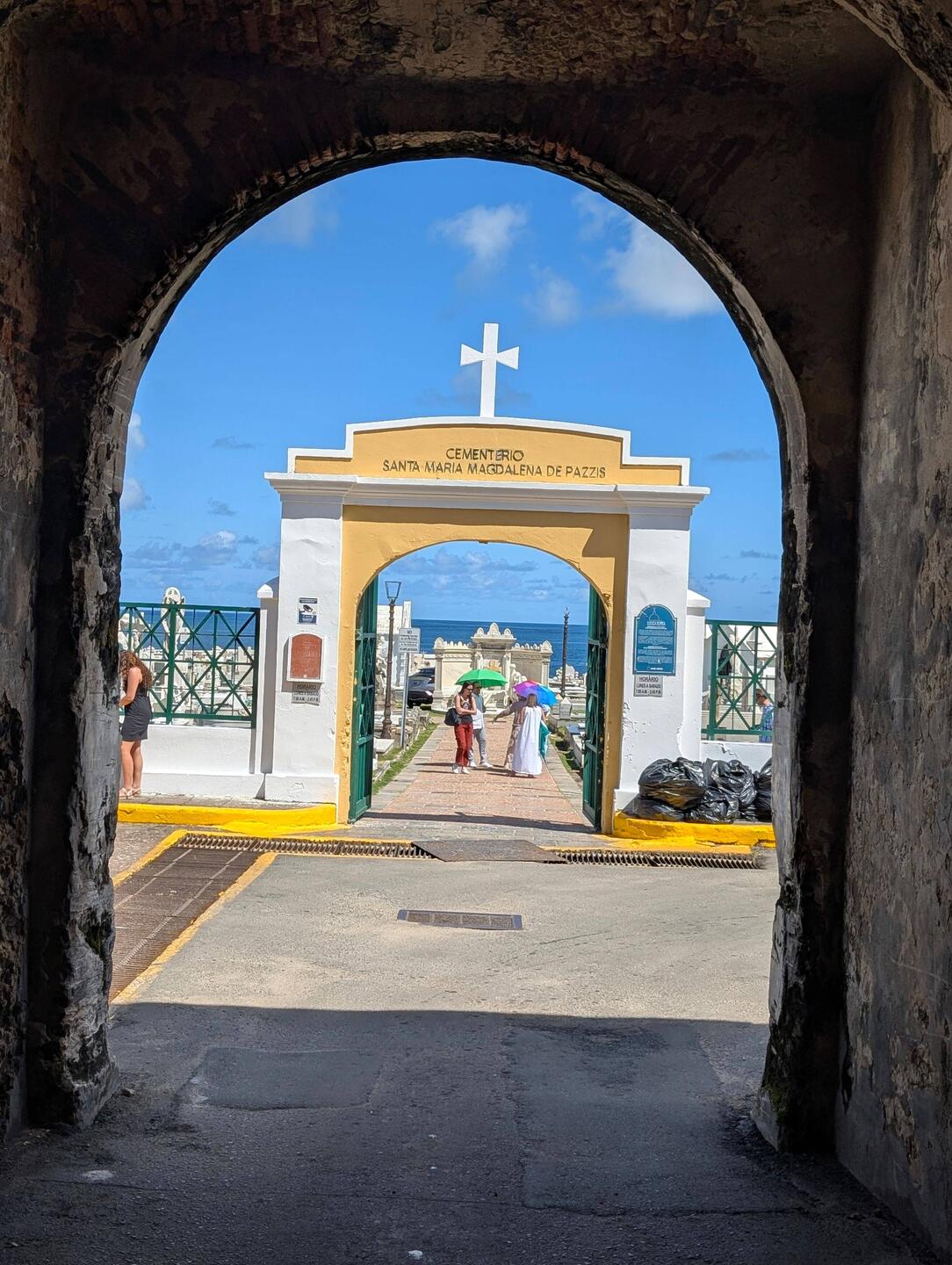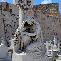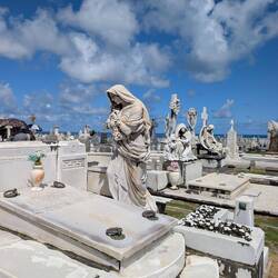 Интересный факт: кладбище специально построили у океана, чтобы волны «смывали» души умерших, по католическим представлениям того времени. Интересно что на кладбище жизнь идёт своим чередом - здесь важно прогуливаются и громко голосят местные петухи, а на солидных мраморных надгробьях греются громадные ягуаны и собаки....