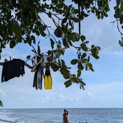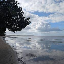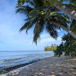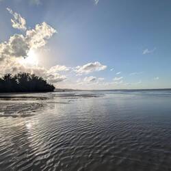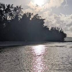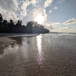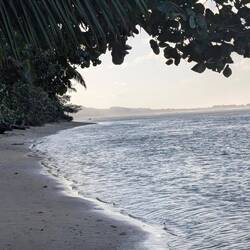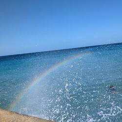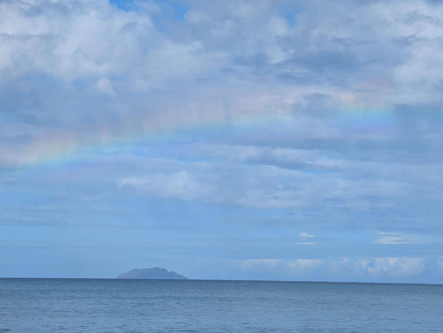 Нам было так тепло, интересно и хорошо на этом острове,хоть и спалось неважно 😉. Утром, как по расписанию, гуляли по длинному пляжу — и снова чудо радуга. За что