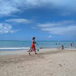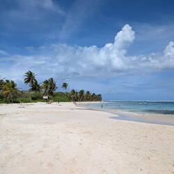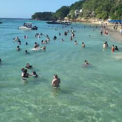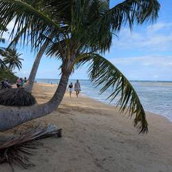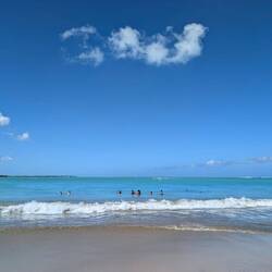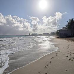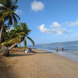 Нам показалось что мы выбрали идеальный пляж для настоящей карибской летней мечты: широкая полоса золотистого песка, мягкие тёплые воды, которые обычно спокойные и удобные для купания даже детям, и набережная с пальмами.