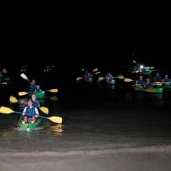 В воде светятся микроорганизмы когда ты двигаешь рукой, веслом или ныряешь — вода вспыхивает голубым светом, как магия.