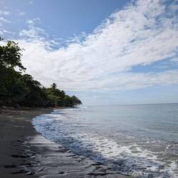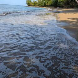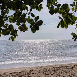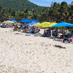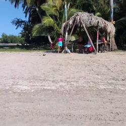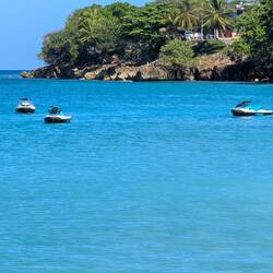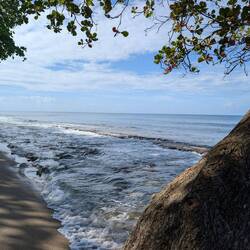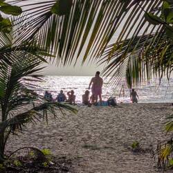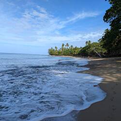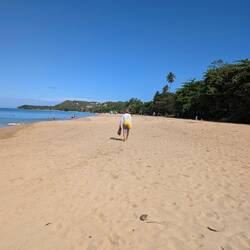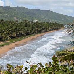 С пляжа открывается чудесный вид на Атлантический океан, а на горизонте — зеленые склоны тропического национального леса Эль Юнке, что добавляет ощущения, будто мы на стыке двух миров: джунглей и моря. С едой здесь тоже всё в порядке, не поголодаеш.