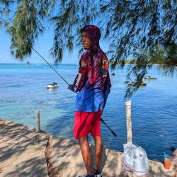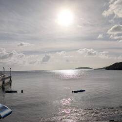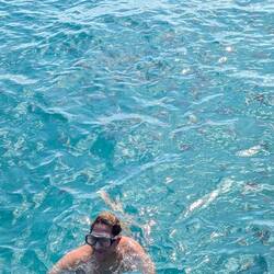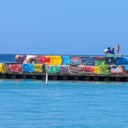 Сегодня мы на Crash Boat Beach. Стоим на цветном пирсе и смотрим вниз — прямо под ногами кружатся сотни рыбок, солнечные блики танцуют на воде, ветер лёгкий и тёплый. Море прозрачное и спокойное, словно хранит все истории этого места.