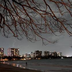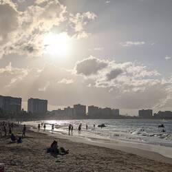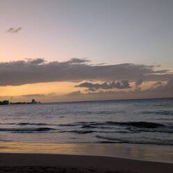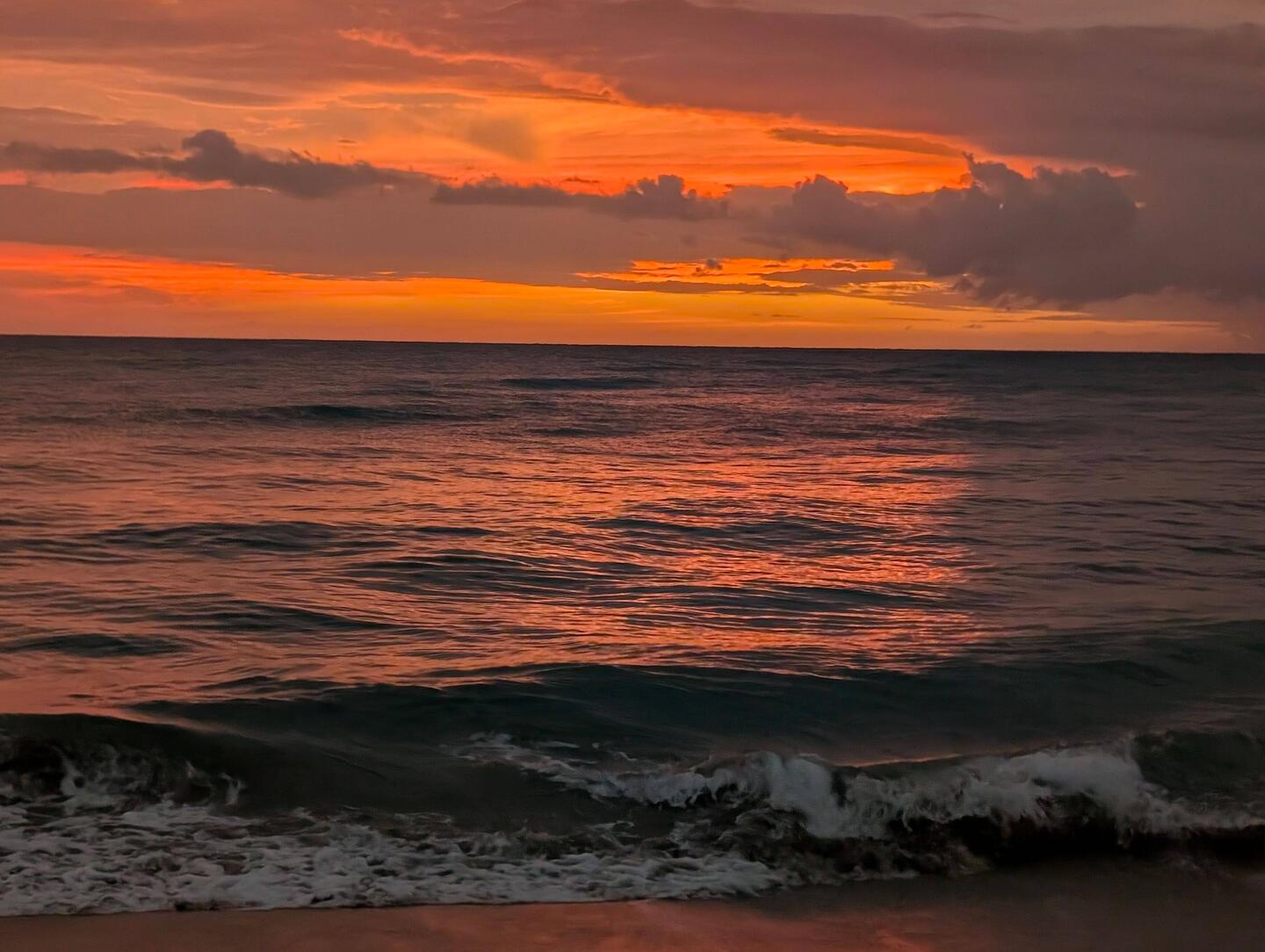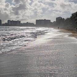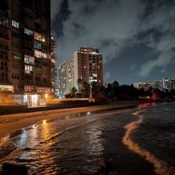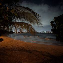 После ужина пошли гулять по ночному побережью. Огни отелей отражались в темноте, самолёты мягко снижались к Luis Muñoz Marín International Airport, это совсем рядом, а волны накатывали, будто стирали границу между началом нашего путешествия и концом.