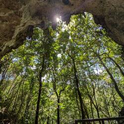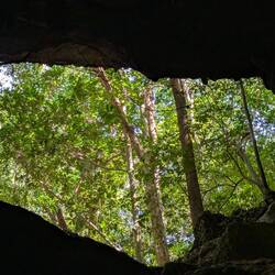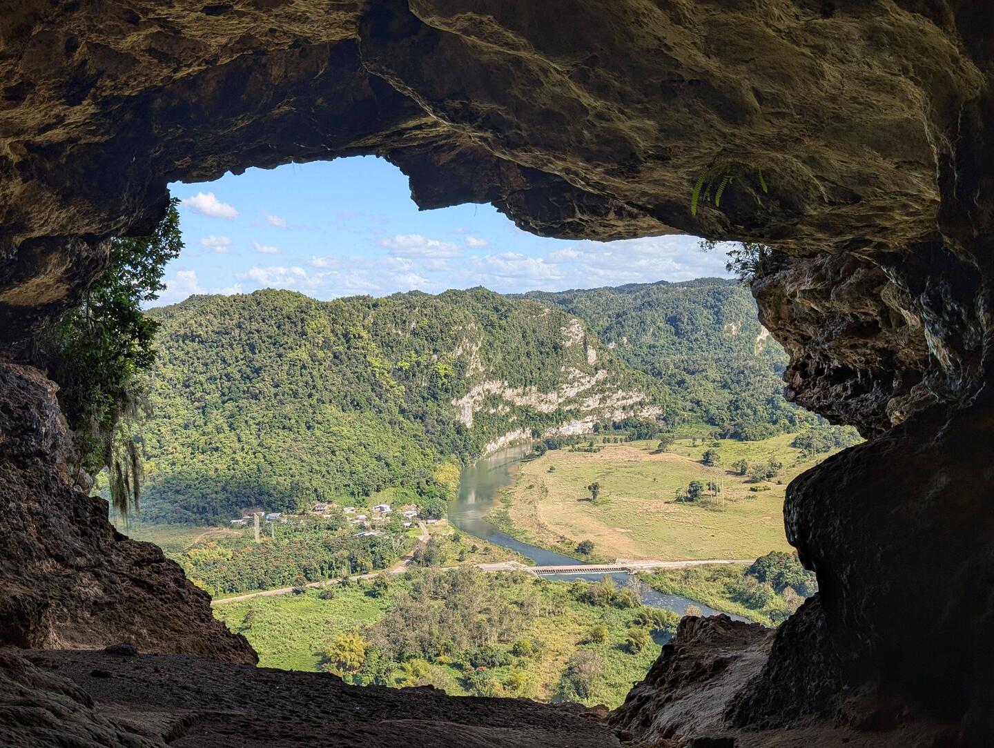 На острове Пуэрто-Рико насчитывается больше двух тысяч пещер, и каждая из них — часть огромной карстовой системы. Эта пещера когда-то была полностью под водой: миллионы лет назад здесь плескался океан, который медленно вытачивал стены, создавая своды, ниши и тот самый каменный балкон. Потом вода ушла, земля поднялась — и природа оставила нам это окно в прошлое.