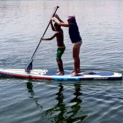 Aber Not mach "erfinderich"... erst kam uns Corinna auf dem Wasser entgegen und danach dann auch bald Ingrid und Max, die sich ein Board teilten....