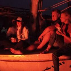 Then we went on the boat to chill, rest, cook food and and and.... Peter then used the time to set up a Campfire 🔥.... after the meal he sang loudly and happily 🎶🎵 and danced 💃🏽 🕺 became... Stefan was on the loss list that evening... he had his back 😡 and just slept through everything.