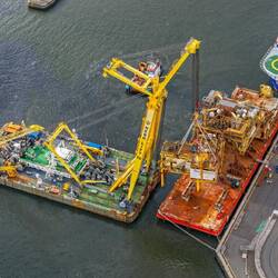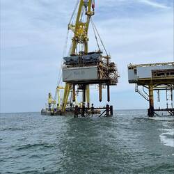 On Thursday the 10th of May, two more modules from the L7-P & L7-Q platforms were taken away from the L7 Central Complex and safely brought back to transportation barges, moored at Den Helder.