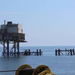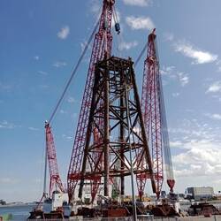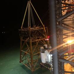 In September/October the jackets of the L7A, L7H and finally the L7N are removed and placed on the barge in Den Helder with the use of crane Barge "Rambiz" of company Scaldis.