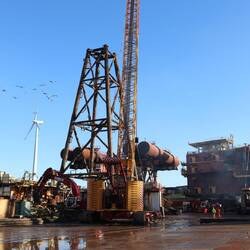 arround the 23rd of December the DEME Innovation arrived in Vlissingen to unload the lifted L7B-BB parts and jacket L7PK at the Sagro demolition/recycling yard in Vlissingen.