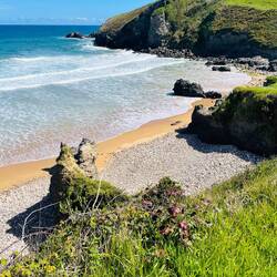 Today's walk was 14 miles in 5.5 hours. It was a tough walk with a zillion hills but it was delightful. A lot of the hike had the ocean to my right with green fields rolling up to me. I finally saw aRead more