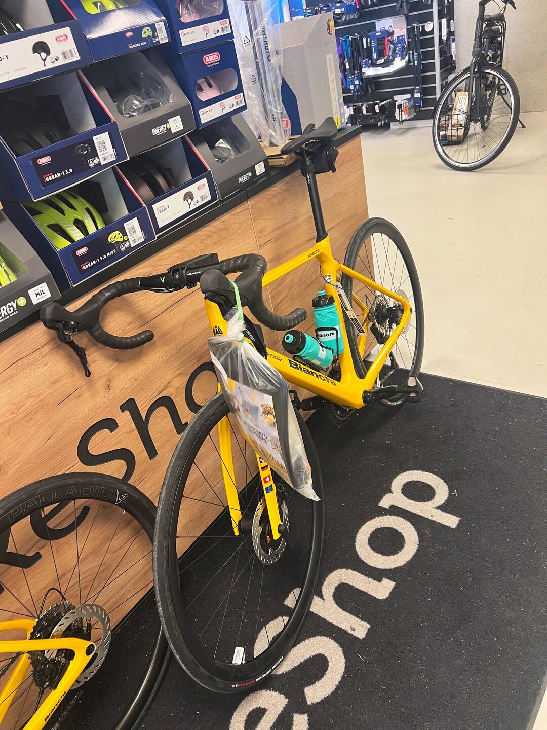Så… endelig efter at have siddet i stuen med alt udstyret på siden jul, så er cyklen kommet. Oliver og jeg hentede den med det samme.