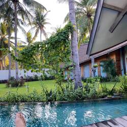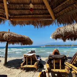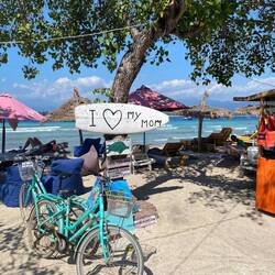 Nach einer sehr anstrengenden Überfahrt zu der Insel Gili T. wurden wir erstmal mit einer Kutsche zu unserer Unterkunft gebracht. Hier gibt es nur Fahrräder, Kutschen und E Scooter als Fortbewegungsmittel 😅👍🏼. Endlich kein Geknatter mehr.