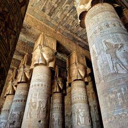 Der Tempel der Hathor entstand im ersten Jahrhundert vor Christus und beeindruckt durch seine Großzügigkeit und durch die Ausgewogenheit der Proportionen. in der Vorhalle tragen 24 Säulen die reichRead more