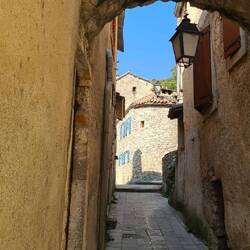 Mach mich runter auf den Weg, bevor noch weitere Autos auftauchen 12% Gefälle. Die Abfahrt ist eng und kurvenreich. Vorm Dorf noch 138 Sekunde auf grün warten, dann ab zum Parkplatz. Da stehen zwar schon 5 weitere Fahrzeuge, ich fühle mich dennoch als Gewinner. Entgegen meiner Erwartung, befindet sich noch alles im Dornröschenschlaf. Ich gehe zum Fluss. Glasklar rauscht er sachte unter den dichten Platanen in einem Kiesbett. Ich gehe schnurstracks Richtung Wasserfall. In mehreren Kaskaden fällt das Wasser erwa 15 - 20 Meter hinunter. Die Kaskaden sind teilweise gut begehbar und so mache ich mich auf den Weg sie zu erkunden. Zwei Männer springen schon munter von einer unteren Stufe aus etwa 3 meter Höhe in das untere Becken. Das schließe ich für mich aus. Habe beim Kreuzen des Flusses - bin in etwa Oberschenkelhöhe durchgewatet - kurz vorher festgestellt, daß er sich eher für Kneippbehandlungen, denn zum Planschen eignet. 12 Grad, wie das Gefälle vorher. Macht nix. Ich sage alles auf, grüsse jeden freundlich mit einem inzwischen bombensicheren "bon jour", bewundere das aus feldsteonen errichtete Dorf und erklimme mit meinen Flipflops den steinigen steilen Pfad zur Jungfrau auf dem Drachenei. Herrlich. Und fast niemand zu sehen. Unter Marias Schoss hat man allerdings eine gute Rundumsicht (wusste jetzt auch nicht wie das eleganter vormulieren sollte) und so entgeht mir nicht, dass Autos wie Perlen an einer Schnur ins Tal fahren. Ich setze meine Wanderung fort und erkunde noch den zweiten Teil des Dorfes. Nach knapp 1 1/2 Stunden zurück am Fluss, die Grußhäufigkeit ist schon recht hoch, fällt mir auf, wie eine ältere Frau vom Parkplatz kommt. In der Hand große Polyethyleneinkaufstasche, aus der ein dickes Brot lugt. Klarer Fall, jetzt kommen die Art von Besuchern, die meinen gedtrigen besuchsversuch (ok, an anderer Stelle) haben scheitern lassen. Ich entscheide ich mich, noch einen anderen Spot anzufahren. Eine Wassermühle mit Wasserfällen erwa 6 kilomter von hier.Baca selengkapnya