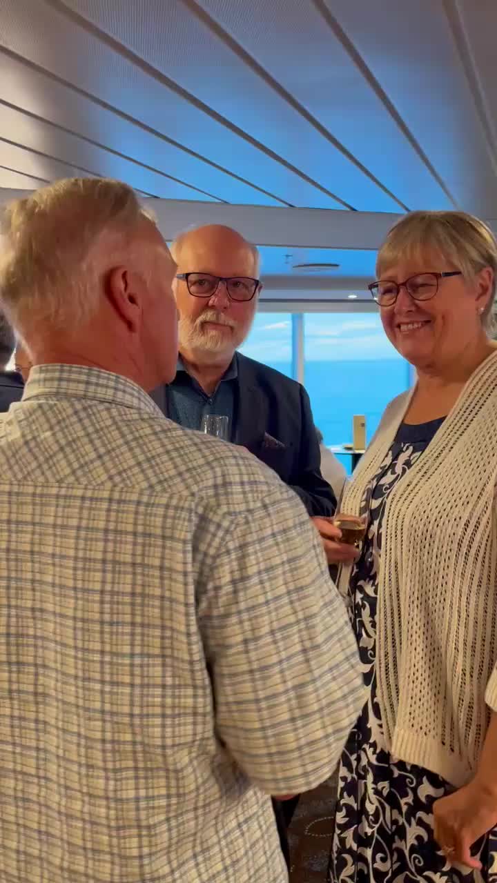 Regular at sea day routine during the day. This evening, we celebrated our cabin neighbours, Leela and Korah’s, 43rd wedding anniversary at dinner in the Grand Dining Room. 🥂Lovely.
