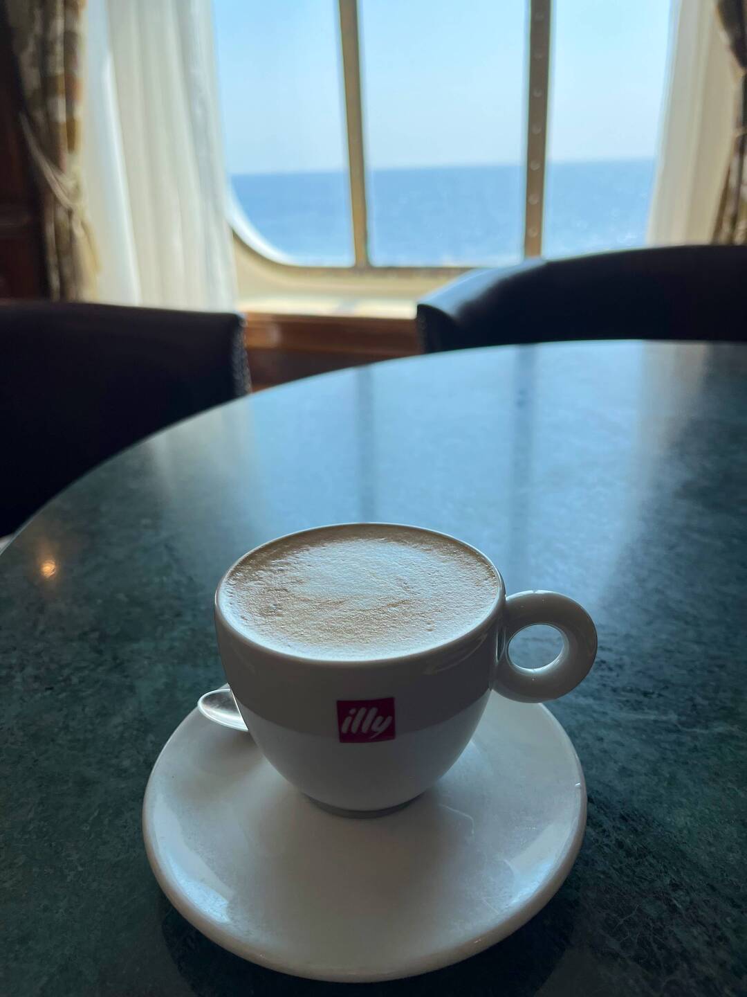 Not much there but a beautiful beach. The more developed and populated area of the island is about an hour away and we weren’t interested in being panicked to make it back for an unusually early all aboard at 1:30 p.m. It was also hot - a “feels like” temperature of 33 degrees Celsius. We wandered around for an hour and headed back to the ship to rest and relax after having spent seven consecutive days in ports. Tonight, it’s the Captain’s traditional cocktail party to start the segment and we have a dinner reservation at the Italian specialty restaurant Toscana.