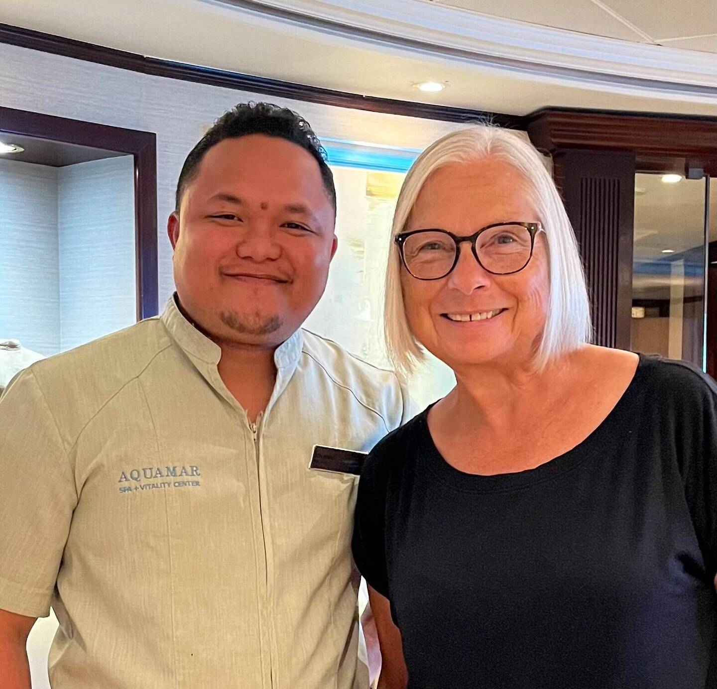 By 4:20 we were quite anxious. Fortunately, we have savvy friends, Erin and Mui, on board who I messaged and immediately got on the case for us. They informed the Purser and connected us to the port agent who spoke Thai. Thanks to their incredible help, the driver was directed to the correct spot and we wound up on board at 4:40 pm. While we were late, it appeared, there were others even later but it certainly was a panic we never want to experience again.