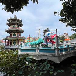 We arrived in Kaohsiung this morning and had decided we’d freestyle it here. The research we’d done assured us we’d be able to walk to a number of places from the port and subway or Uber to others. We set off to visit Pier2 Art Centre, Formosa Boulevard Station/Dome of Light, Dragon and Tiger Pagodas, Lotus Pond, Spring and Autumn Pavilion, Fongsham Old City and Shinkuchan Shopping District. An ambitious list but we managed to do it all, with time to spare, even with the temperature reaching 31.