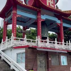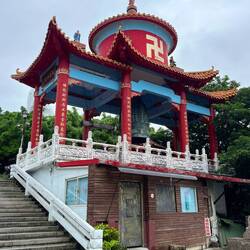 We’re only here for the morning so no time to go back to Taipei; all aboard is at 11:30 am. But we didn’t want to sit around so we set off at 9:30 am in the rain to visit Zhongzheng Park which sits on the side of Dashawan Mountain. (We weren’t surprised it was raining; Keelung is nicknamed The Rainy Port.)