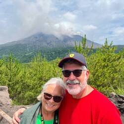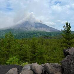 We were fortunate that the weather and the volcano cooperated. The morning clouds lifted and the volcano puffed smoke. The challenge was to capture its power in a photo. Impossible.