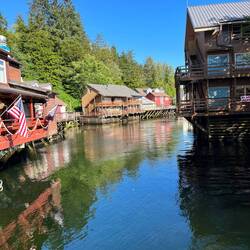 Back to our native land but still far from home. Arrived in Prince Rupert this morning to sunshine and blue skies. Though we’ve never been here before we didn’t book an excursion since you can easily walk off the ship and explore on your own. We were especially thrilled to turn airplane mode off on our phones and not pay a nickel in roaming fees which was such a treat.