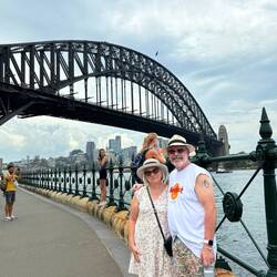 Last night, we went on the BridgeClimb up to the top of the arch of the Sydney Bridge. We had debated whether to do it, but decided before we left Toronto and booked tickets for a twilight climb. OurLue lisää