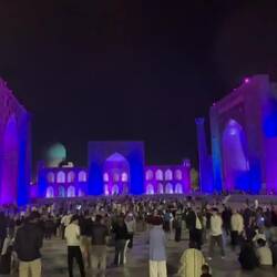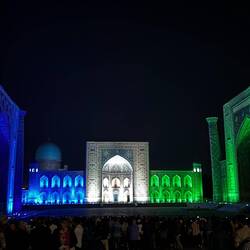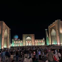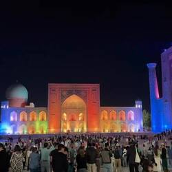 The group went for dinner tonight, followed by a light and 3D show at Registan Square. The show involves a laser and light spectacle that brings the historic madrasah buildings to life as well as a 3DOkumaya devam et