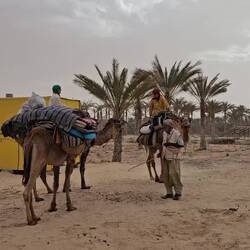Nach einer stürmischen Überfahrt mit sehr vielen seekranken Menschen sind wir spät Abends sehr unkompliziert in Tunesien immigriert. Unser erster Stop war ein ganz besonderer Stellplatz in derMeer informatie