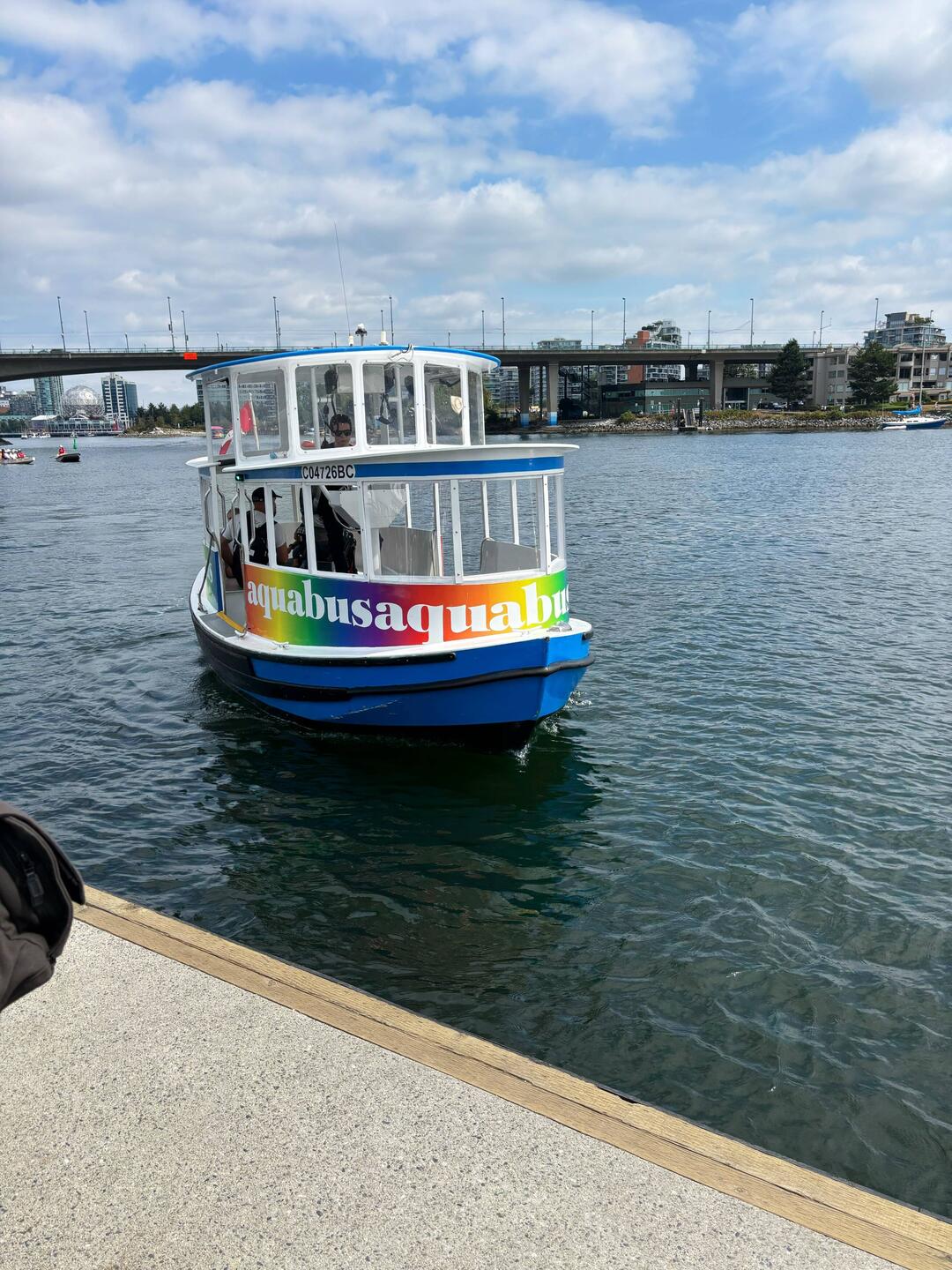 Um nach Granville Island zu kommen haben wir den Aquabus genommen. Da fahren sehr viele Schiffe in unterschiedlichen Größen verschiedene Stopps entlang der False Creek an.