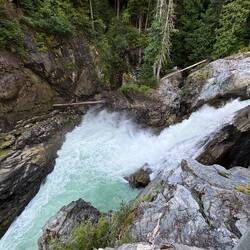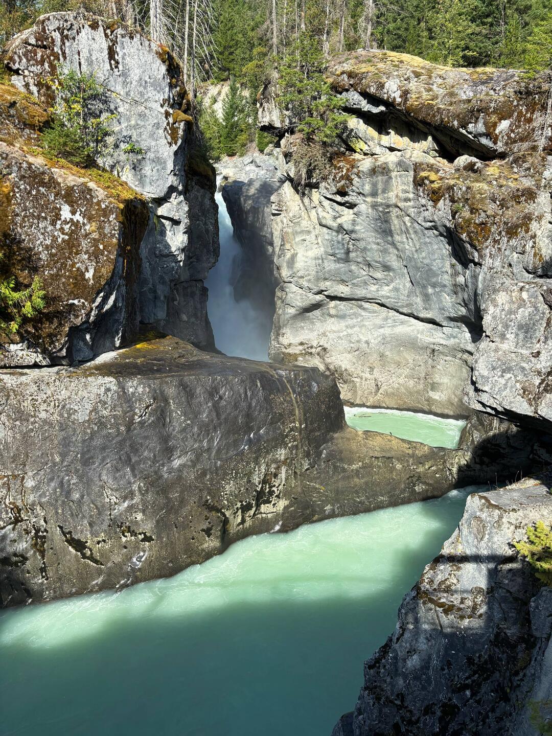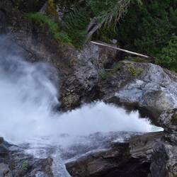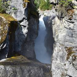 Der Wasserfall schießt aus einem kleinen Kanal raus. Das Wasser hat die typischeもっと詳しく