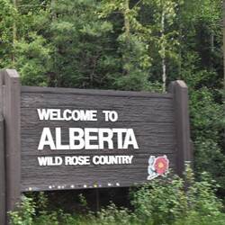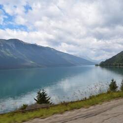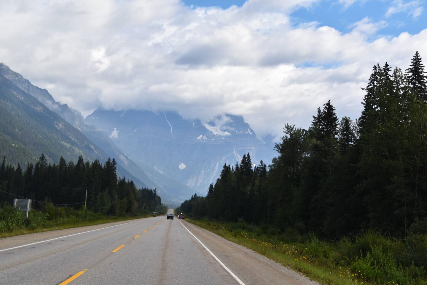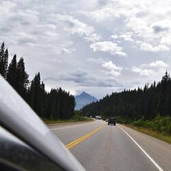 Die Straße führt uns heute nach Jasper. Auf dem Weg dahin überqueren wir die Grenze nach Alberta und verlieren eine Stunde wegen der Zeitverschiebung (wieder 8h nach zuhause).