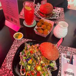Nach der Ankunft sind wir erstmal was bei Funky Vegan Food essen gegangen und zum Abschluss am Rhein spazieren gegangen 🌉🍔