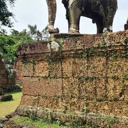 Da die Tempel bis auf den Angkor Wat Tempel allerdings erst um 07:30 uhr öffnen, hatten wir noch mehr als eine Std. Zeit. Während dieser Zeit habe ich mir die Elephant Terrassen angeschaut. Das ist quasi eine Mauer mit Abbildungen von Elefanten.