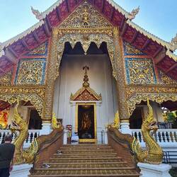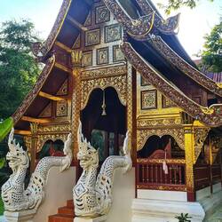 Danach bin ich noch mal los zu einem anderen Tempel, der 5 Minuten fußläufig von mir aus zu erreichen ist. Einer der beliebtesten hier in Chiang Mai, dem Wat Phra Singh. Das ist wieder ein verhältnismäßig großer Tempel mit verschiedenen Stilrichtungen wie Teak-Holz aber auch viele vergoldente Elemente, sowie Stein. Ich finde durch so ein Tempelareal zu gehen gleicht ein bisschen einem Labyrinth und man entdeckt immer mehr Dinge. Deshalb sollre man sich wirklich genügend Zeit nehmen, sich die Tempel auch ganz genau an zu schauen.