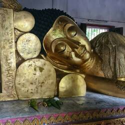 Da quasi heute mein letzter produktiver Tag hier in Chiang Mai war und der Kochkurs den ich super gerne besucht hätte, leider für morgen schon ausgebucht ist, bin ich noch mal die Liste der sehenswertesten Tempel durchgegangen. Was sonst.... 😅 Tja... Es gab tatsächlich noch 4, die ich nicht gesehen habe. Zum Glück sind alle fußläufig im Umkreis von ca. 2 km zu erreichen. Die Sonne brannte heute so extrem! Also erster Stop auf dem Weg zu 7eleven, mir erst mal etwas Kaltes zu trinken holen. Danach habe ich mich auf dem Weg zum Wat Rajamontean Tempel gemacht. Der ist im Vergleich zu den anderen Tempeln relativ klein, aber hat eine große Buddha-Statue. Auf der gegenüberliegenden Straßenseite durch einen Wassergraben getrennt liegt der Tempel Wat Lok Mo Li. Dieser ist ein wenig größer und wesentlich touristischer als der zuvor. Der Eingang des Tempels war mit bunten Lampions geschmückt. Das sah wirklich hübsch aus.