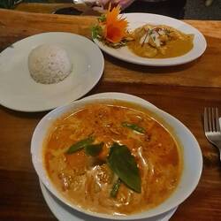 In meinem Zimmer im Hostel sind übrigens zwei deutsche Mädels, die hier in Khao Lak tauchen bzw. von hier aus mit einer Tauchschule Tagesausflüge machen. Mit einer von beiden, Alex aus München war ich abends noch ein wenig hier in Khao Lak unterwegs. Wir sind ein wenig über den Markt geschlendert und haben eine Kleinigkeit gegessen. Mein erstes "Curry" in Thailand. Es war ganz gut, aber vom Hocker hat es mich nicht. gehauen 😏 Das geht defintiv besser. Erschreckend ist, dass es hier scheinbar die Hochburg der Deutschen ist, was ich zuvor gar nicht wusste 😄 überall Deutsche! Total komisch, soviel "deutsch" zu hören. Teilweise gibt es hier auch deutsche Restaurants mit Currywurst und Pommes. Für mein "Geschmack" dann doch ein bisschen zu viel..