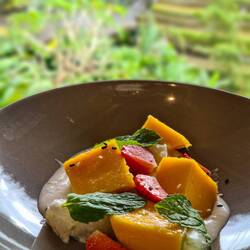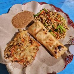 Um 18:30 Uhr hatten wir einen Tisch in einem indischen Restaurant ASHTARI - Indian Slow Food / Yoga / Loft bestellt, wo Britta zuvor ihre Yogastunde hatte. Bei mir gab es Flühlingslollen mit Peanutsoße mit wunderschönem Ausblick 😍