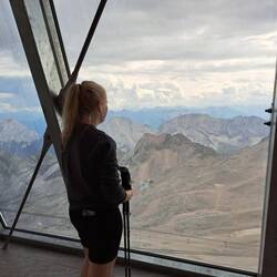 Heute gibt es einen Besuch auf der Zugspitze. Mit der Zahnradbahn und Gletscherbahn sind wir bis auf dem Gipfel gefahren.