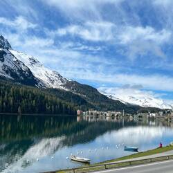 Europe 2024TravelerShow tripAdd to bucket listRemove from bucket listShareDay 37–39May 24, 2024 at 10:17 AM - May 26, 20242 nights ☁️ 3 °C Altitude: 1,780 m SwitzerlandSt. Moritz Bahnhof46.49722, 9.84523846°29’50” N 9°50’43” ESt Moritz May 24–26, 2024 in Switzerland ⋅ ☁️ 3 °C Lake Moritz set in front of the snow capped mountains. 0 likes Show trip