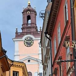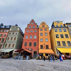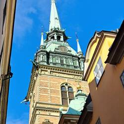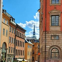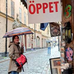 Unser Zimmer im sechsten Stock bietet einen grandiosen Ausblick auf das Wasser und die umliegende Stadt. Verschiedene Boote liegen vor Anker und hinter historischen Gebäuden ragen etliche Türme in den grauen Himmel. Im Bett dominiert ein Berg von Kissen, wir schlafen darin bestimmt königlich und beschliessen dem niederprasselnden Regen ein Schnippchen zu schlagen und uns etwas hinzulegen. Die Siesta tut gut, ausgeruht machen wir uns trotz Regen, unternehmungslustig auf, zur ersten Stadtbesichtigung. Gamla Stan, die auf der Insel Stadsholmen gelegene Altstadt von Stockholm ist unser erstes Ziel. Ihre Geschichte reicht zurück bis ins 13. Jahrhundert. Von Gamla Stand entwickelte sich die Stadt später in alle Richtungen. Wir laufen durch kopfsteingepflasterte, verwinkelte Gassen, die an ein Labyrinth erinnern und lassen die vielen alten, imposanten Gebäude auf uns wirken. Kaum haben wir die Schirme aufgespannt, drückt wieder die Sonne durch. Das Wetter wechselt sich in munterer Reihenfolge ab. Wir spazieren an Restaurants und unzähligen Läden vorbei, bleiben stehen und riskieren einen Blick ins Innere. Es gibt so viele Eindrücke, dass man kaum weiss, wohin man zuerst blicken soll.Meer informatie