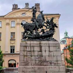 Nach dem Tenuewechsel im Hotel, starten wir nochmals einen Versuch, beim royalen Shop. Dieses Mal haben wir Glück und er ist "öppen". Nach den vielen royalen Souvenirs und Eindrücken, besteigen wir an der nahen Haltestelle den "Hop on, Hop off" Bus. Nun geniessen wir auch die Quartiere um den Stadtkern, die wir nicht alle zu Fuss ablaufen können und erhalten einen Eindruck der Grösse der Stadt Unsere Sigthseeing-Tour führt uns an allen Sehenswürdigkeiten vorbei. Herrlich, sie abschliessend nochmals bequem in uns aufnehmen und bewundern zu können. Ein idealer und stimmiger Schlusspunkt unseres zu Ende gehenden Stockholmtrips.