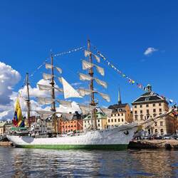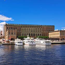 Bevor wir anlegen, machen wir einen Abstecher zum Kungliga Slottet, dem königlichen Palast, der vor allem Regierungssitz ist und in der Neuzeit repräsentative und zeremonielle Aufgaben erfüllt. Der Barockbau wurde von 1697- 1760 nach den Plänen des Hofarchitekten Nicodemus Tessin erbaut und gilt als Meisterwerk.