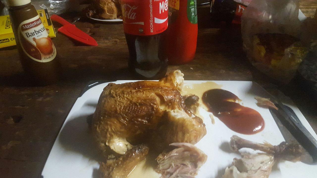 Hähnchen, Käsekuchen und Cola!! Deutlich besser als der Dosenfraß!!:))