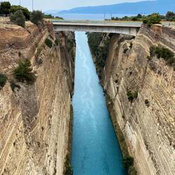 Fahrt lang der Küste vorbei an Xylocastro und dem Kanal von Korinth. Wegen sich anbahnenden Gewitter musste die Besichtigung von Akrokorinth ausfallen.