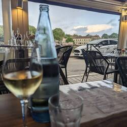 I sat on a terrace near the river for dinner and splurged on a variety platter with a very nice glass of local white wine- dry and crisp with flavors of stone fruits, melon, and fresh grass. Reminds me of a pinot gris/Sauvignon blanc mix and paired very well with the ambiance.