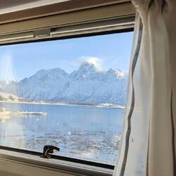 Nach einer ruhigen Nacht, wurden wir heute wieder von der Sonne geweckt. 🤗☀️ Das Wetter zeigt beste Voraussetzung für einen erneuten Versuch, nach „Nusfjord“ zu gelangen. 💪