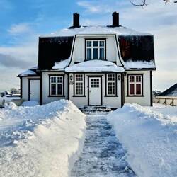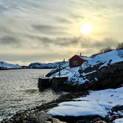 Wir spazieren 🚶♂️ entspannt durch das niedliche Örtchen, schauen uns u.a. die Gallerie 🖼️ und den Hafen ⚓️ sowie den Stockfisch 🐟 und den verschneiten Sportplatz an. ❄️ ⚽️