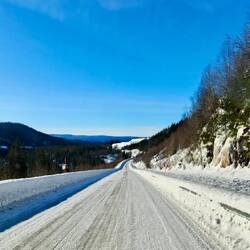 Wir machen mehrmalige Stops und spazieren 🚶 entlang an Flüssen, überqueren zugeschneite Brücken 🌉 und bestaunen die kleinen niedlichen Kirchen, welche in jedem Örtchen stehen. ⛪️ Der Verkehr hält sich auch in Grenzen, sodass das Fahren entspannt 😎 ist und selbst Fotoshootings 📸 mitten auf der Straße auch kein Problem sind. 🤣🤭
