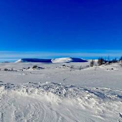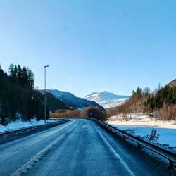 Entlang des Fjordes nehmen wir die E6 Richtung Trondheim. Ein paar Straßensperrungen 🚧 zwingen uns jedoch einen vereisten Umweg über Stock und Stein 🌳 🪨 um den See Jonsvatnet zu machen. Wieder auf der Schnellstraße, lassen wir Trondheim links liegen und versuchen weiter Strecke 1️⃣2️⃣3️⃣ zu machen.