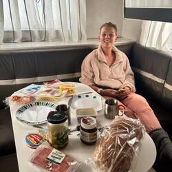 Er berichtet uns von seinen Reiseplänen… So z.b. das er allein unterwegs ist, in seinem Kleinwagen schläft und 87 Jahre alt ist. 👴😳 Uns werden Bilder 🖼️ aus den Sommermonaten gezeigt und ausführlich erläutert, wie schön der Süden Norwegens ist. 🫡